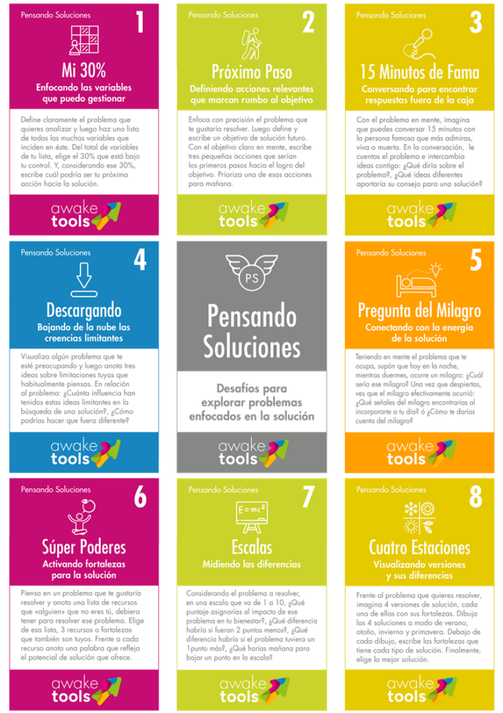 Te invitamos a descargar el material en la sección “Awake Tools” y experimentar cómo cambia la conversación cuando entrenas tu mente en pensar soluciones.